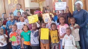 Archdeaconess Angelic-Phoebe Molen and the Sunday School kids.